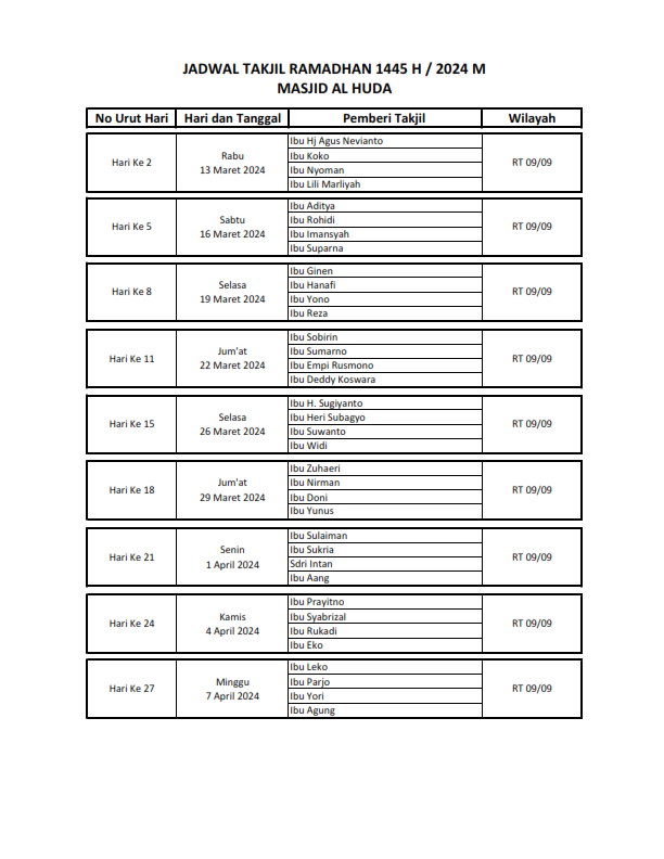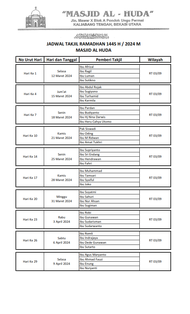 Posted in1445 Data warga pemberi takjil buka puasa Posted by By H Kirno Sukirno Desember 11, 2024 H Kirno Sukirno View All Posts Post navigation Previous Post Data Distribusi daging Qurban Tahun 1445 H / 2024 MNext PostKegiatan TPA, HAPALAN QUR”AN