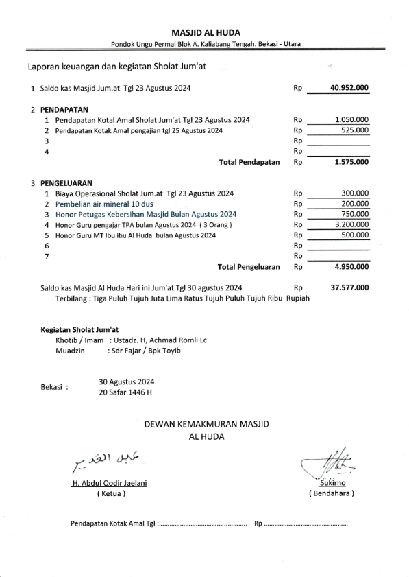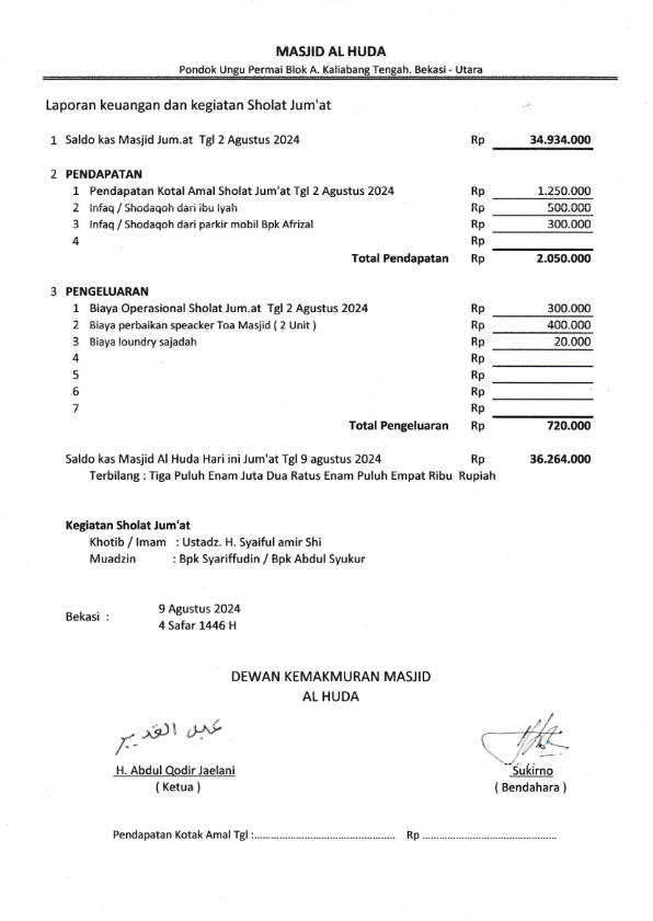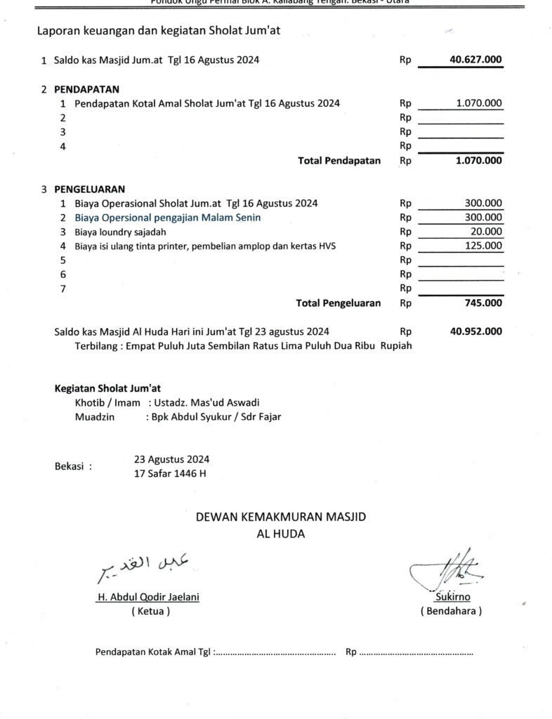 Posted inJum'atan Laporan Jum’at Bulan Agustus 2024 Posted by By H Kirno Sukirno Desember 11, 2024 H Kirno Sukirno View All Posts Post navigation Previous Post Laporan Jum’at Bulan Juli 2024Next PostLaporan Jum’at Bulan September 2024