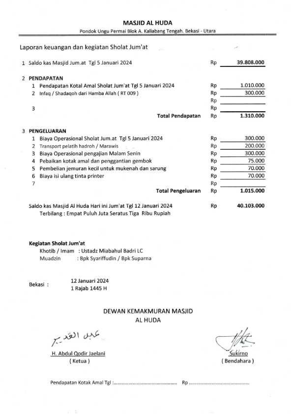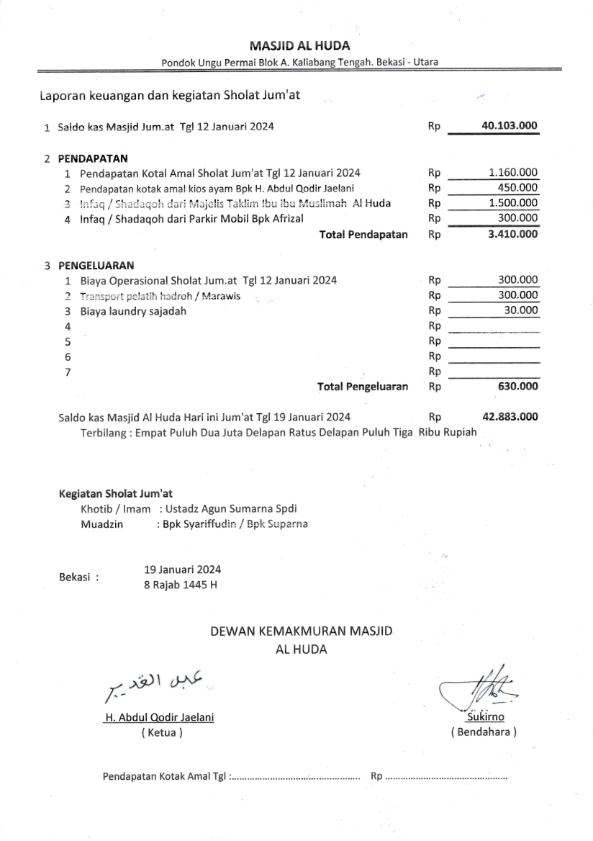 Posted inJum'atan Laporan Jum’at Bulan Januari 2024 Posted by By H Kirno Sukirno Desember 10, 2024 H Kirno Sukirno View All Posts Post navigation Previous Post Laporan kas keuangan Masjid Bulan Nopember 2024Next PostLaporan Jum’at Bulan Februari 2024