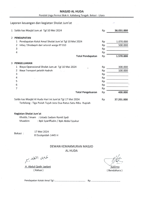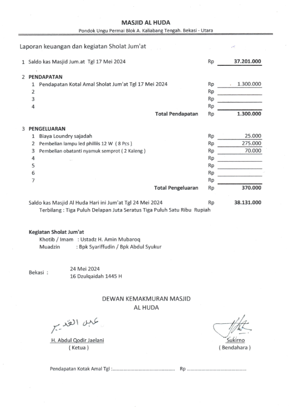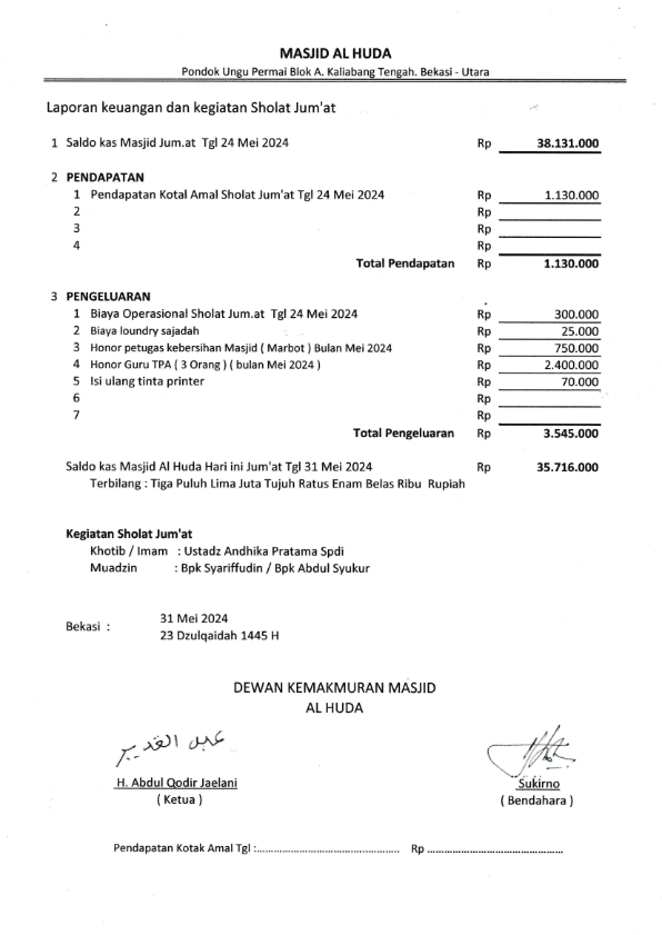 Posted inJum'atan Laporan Jum’at Bulan Mei 2024 Posted by By H Kirno Sukirno Desember 11, 2024 H Kirno Sukirno View All Posts Post navigation Previous Post Laporan Jum’at Bulan April 2024Next PostLaporan Jum’at Bulan Juni 2024