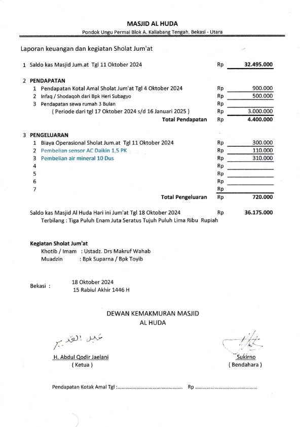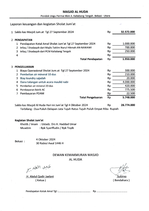 • Laporan Jum’at Bulan Oktober 2024