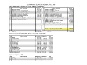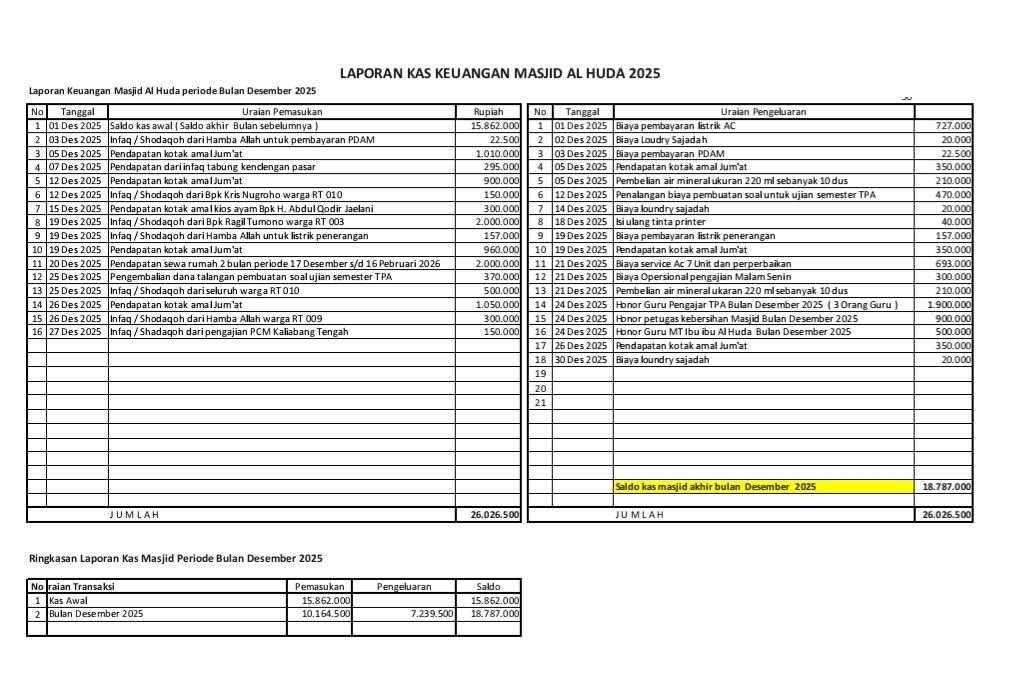• Laporan kas keuangan Masjid Bulan Desember 2025