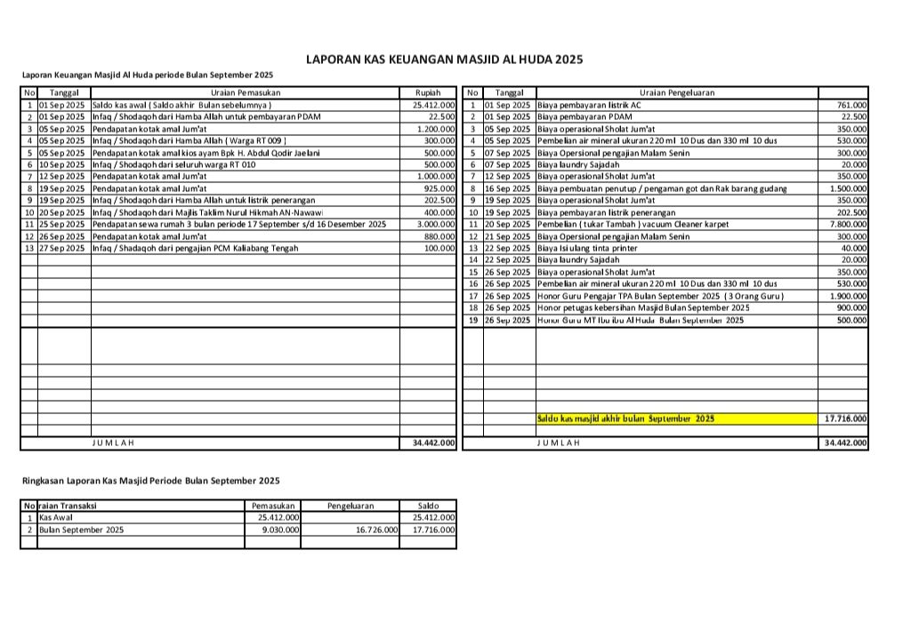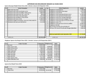 • Laporan Keuangan kas Masjid Bulan September 2025
